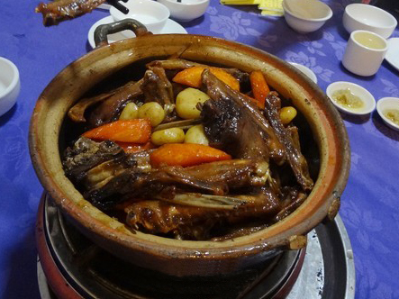 据服务员说,这个鸭五件,假如喜欢的话,还可以在上面打火锅,只要稍微加点水,把里面的汤汁调稀就好了。