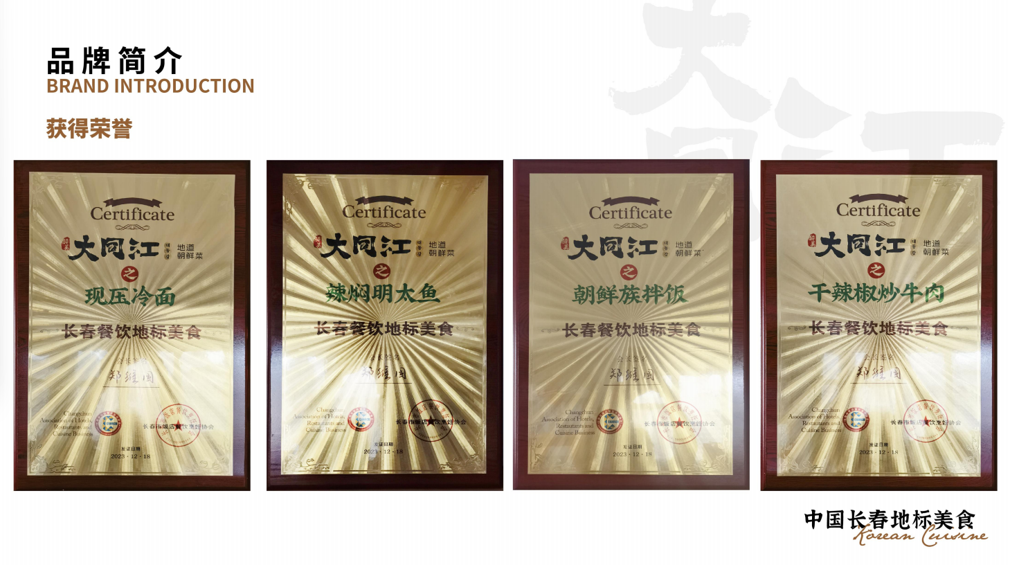 大同江餐饮管理有限责任公司前身是1998 年创立于吉林白山的大同江冷面,从街边地摊一步步成长,2019 年正式注册公司,总部落户长春。如今已是集特色小吃、快餐、韩餐、加盟代理、餐饮管理、优质供应链与多品牌跨区域经营于一体的综合性连锁企业。主品牌大同江朝鲜菜2013年面世,凭借地道朝鲜族风味与稳定品质圈粉无数,目前拥有 13 家直营、3 家联营门店,2024 年成功进入山东、河北、四川等省份,向着全国特色菜代表品牌稳步迈进。