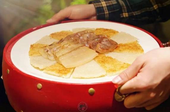 制作方法简单:取糯米整成米饭,煎成薄薄的糯米锅巴,蒸熟的咸肉和香肠放在锅巴上,淋上蒸肉的汤汁即可。