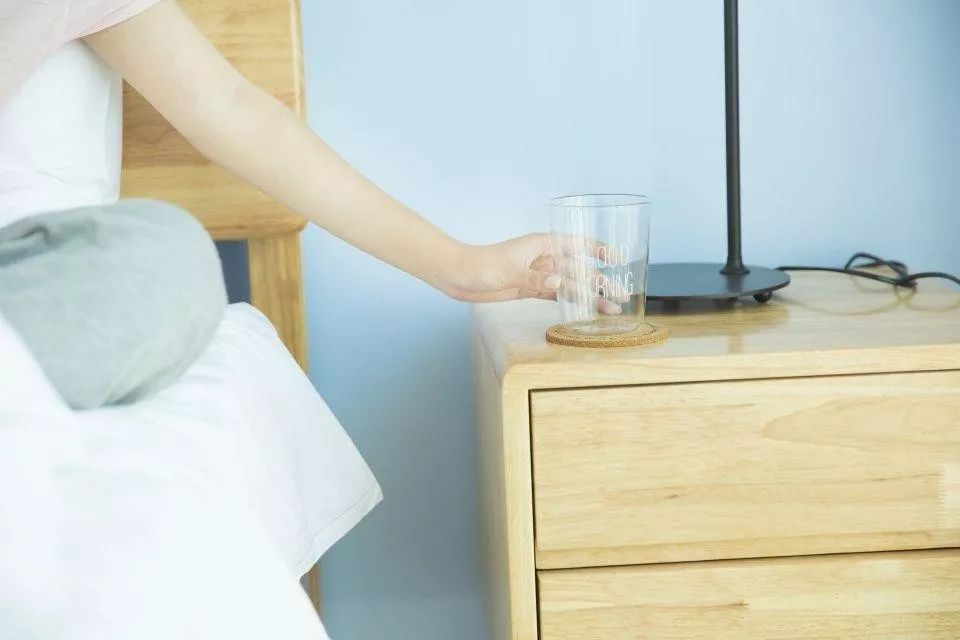 夏天夜间丢失水分多,因此,晚上睡前半小时至一小时也要喝200~300毫升水。200~300毫升的水不会让你过于担心起夜或者第二天眼睛肿的问题,反而对补充夜间水分、稀释血液是非常有帮助的。即使晚上会起夜,也应该在睡前喝一杯水,利大于弊。