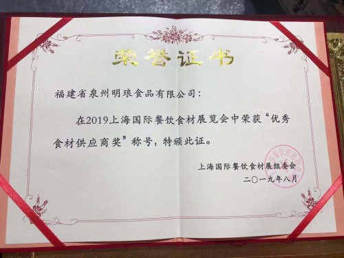 2019年上海国际餐饮食材博览会“优秀食材供应商奖”