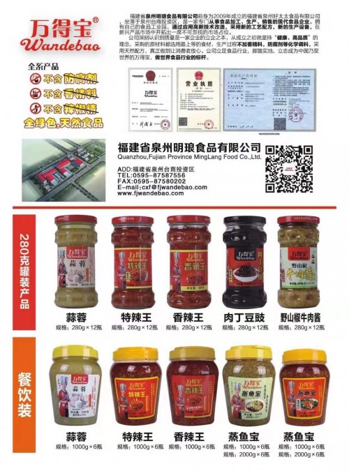 万得宝秉承“匠心精神”,回归食材制作的最初理念,将产品品质放在首要地位,力求将健康,美味等产品属性最大化与最优化。产品采用苗家秘方及闽南风味结合,打造独特的产品优势,结合现代工艺,同时依据不同地区口味,经过精心秘方调配,生产出符合中国口味的美味食品。